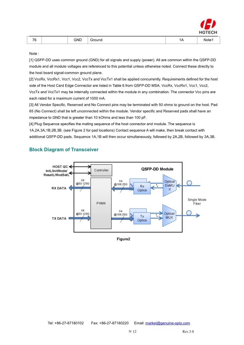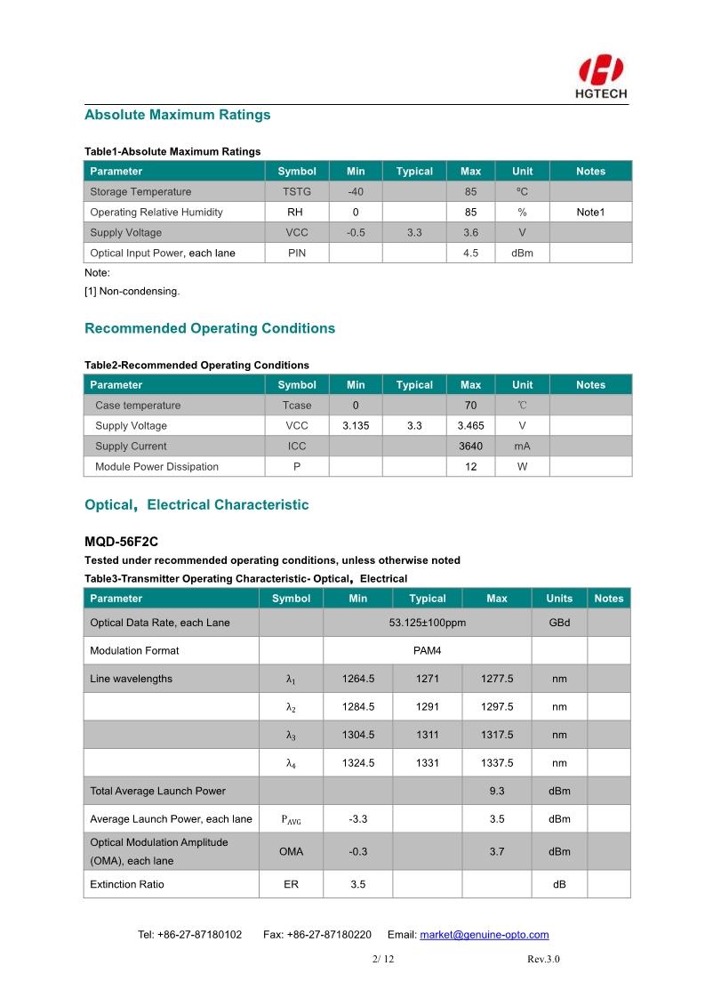 The HG Genuine MQD-56F2C Transceiver is a high performance, cost effective module for optical data communication applications to 400G. The MQD-56F2C is designed to Data Center accept 100G Lambda MSA 400G FR4 specification traffic for 2km links.
