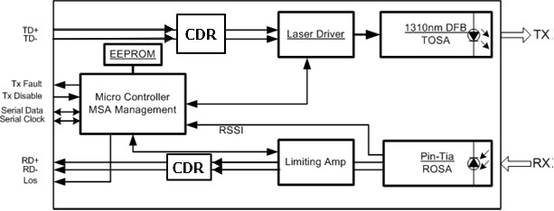 a conventional uncooled laser Power Level 2 a conventional limiting output the transceiver has an internal retimer or CDR TX_DISABLE TX_FAULT Rx_LOS |