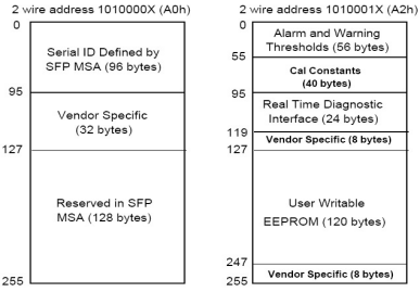 A serial EEPROM in the transceiver allows the user to access transceiver monitoring and configuration data via the 2-wire SFP