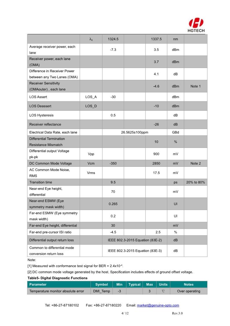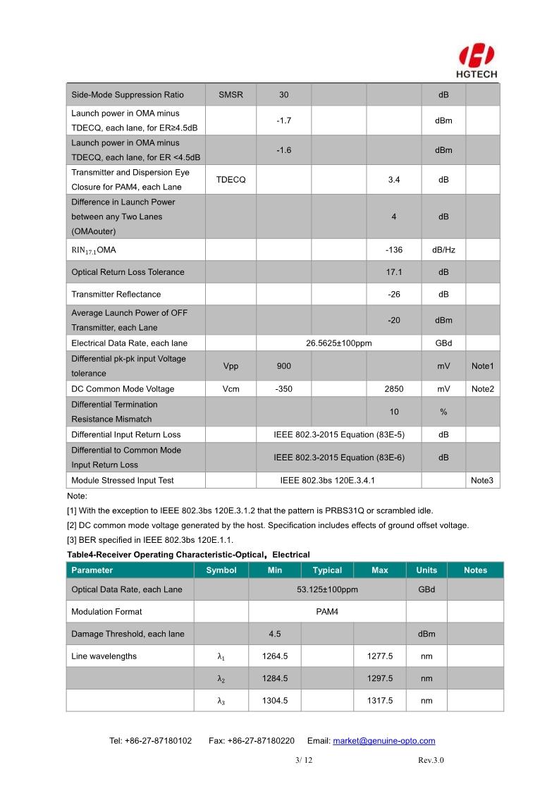 The HG Genuine MQD-56F2C Transceiver is a high performance, cost effective module for optical data communication applications to 400G. The MQD-56F2C is designed to Data Center accept 100G Lambda MSA 400G FR4 specification traffic for 2km links.